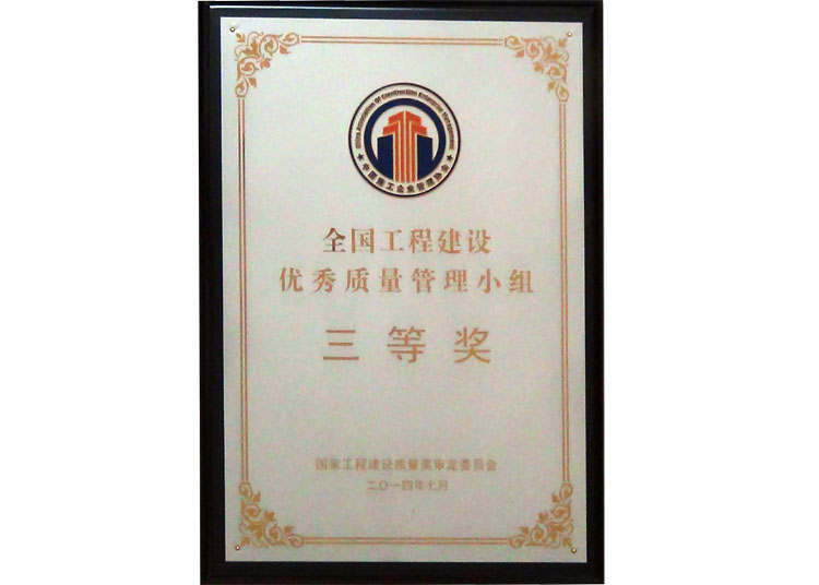 全國工程建設(shè)優(yōu)秀質(zhì)量管理小組三等獎(jiǎng)